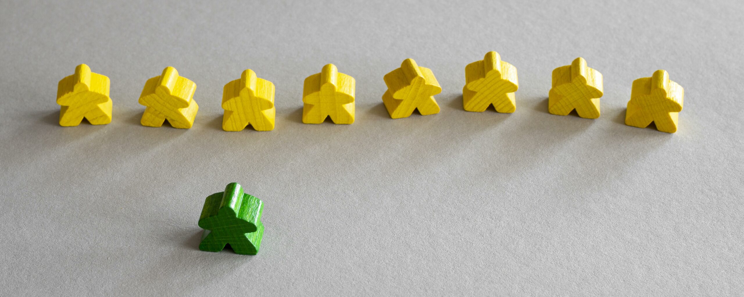 Meeple to mały, zazwyczaj drewniany pionek używany w niektórych grach planszowych. Termin pochodzi od połączenia angielskich słów “my” + “people” czyli moi ludzie, lub moje postacie. Po raz pierwszy pojawił się w grze Carcassone, gdzie gracze używali drewnianych, przypominających ludziki figurek do oznaczania swoich obszarów.